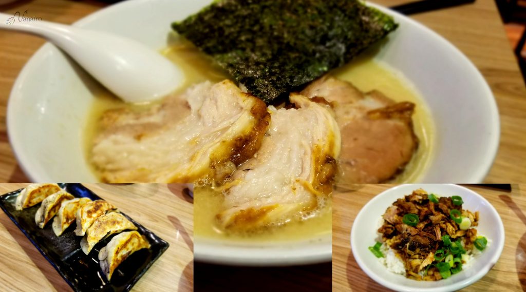 サイドメニューも気になったので、今回Nanairoでは「半チャーシューラーメン(麺:超硬、濃さ:普通、背油:普通、チャーシュー:ミックス)」と「チャーシューご飯(大)」と「餃子6個」を注文してみました。