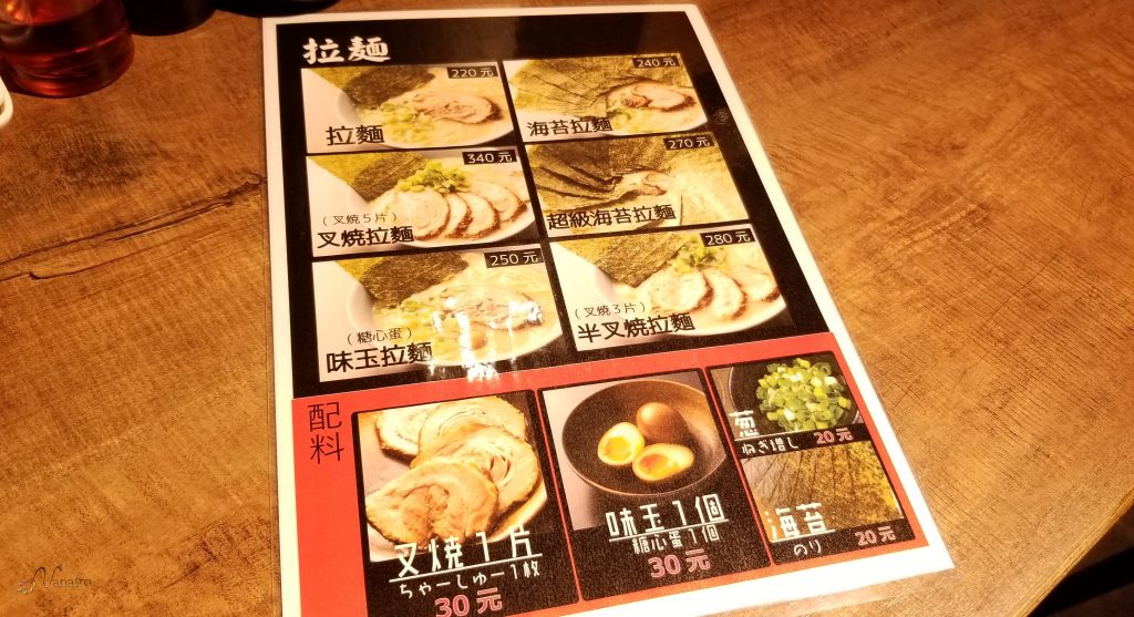 - 海苔ラーメン:240元(約720円)
