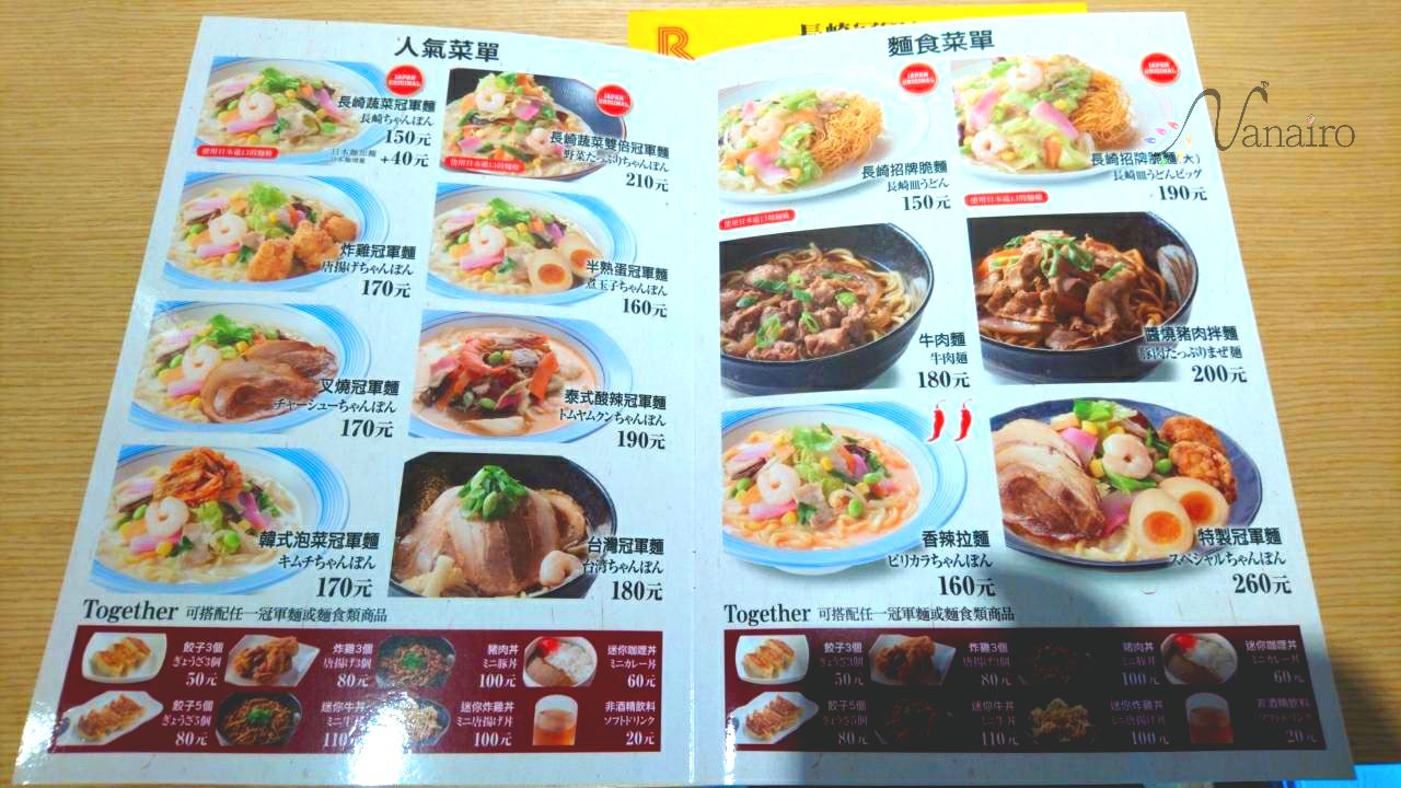 台北民権西路店(2号店)のメニューは、どんな感じでしょうか。リンガーハットさんの公式HPには、”メニューを一新”とありました。台北南港店(1号店)とはまた違ったメニューになっていることは間違いありません。