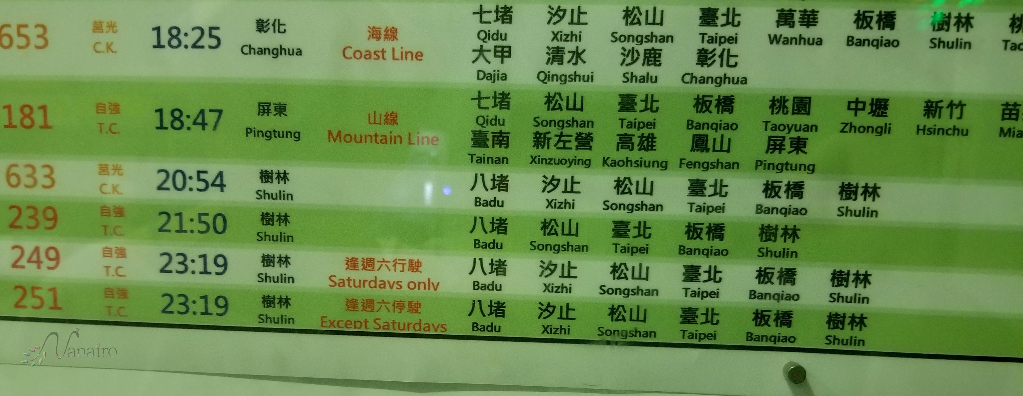 ※「瑞芳(ルイファン:rufāng)」駅までは、台北駅(台北車站:タイベイチャーヂャン:táiběichēzhàn)から出発するのが、分かりやすいと思われます。