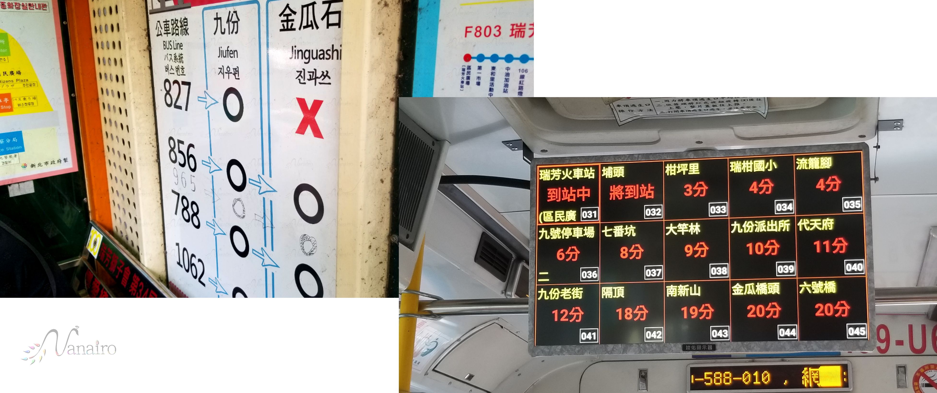 「827番・856番・965番・788番・1062番」はいずれも、九份まで行きます。※2019.8月現在