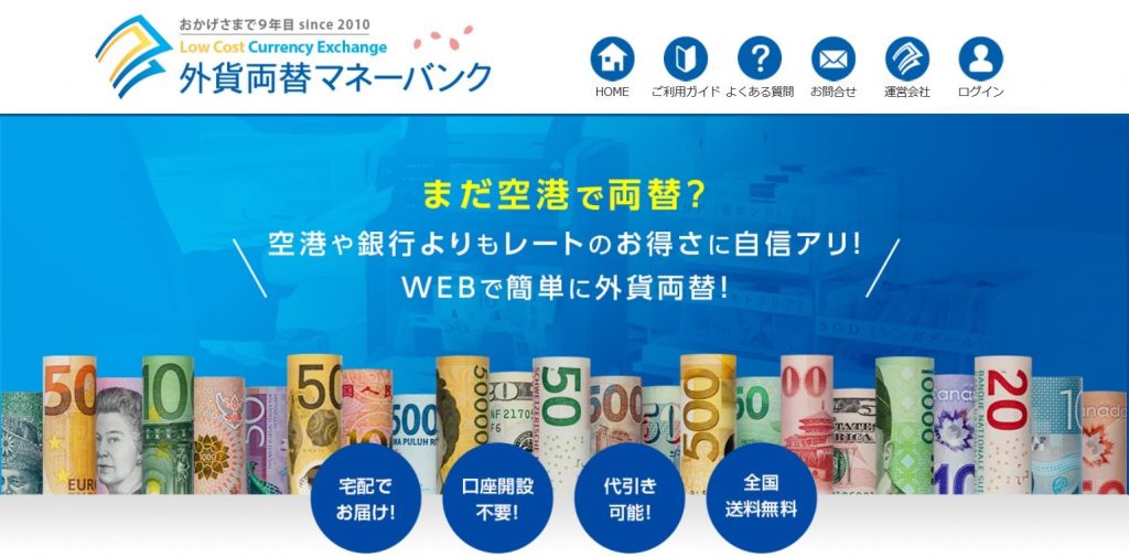 この「外貨両替マネーバンク」は銀行や両替所よりもお得に外貨両替を行うことができることも多く、旅行中に使いきれずに持ち帰った外貨を宅配サービスで日本円に戻すこともできます。