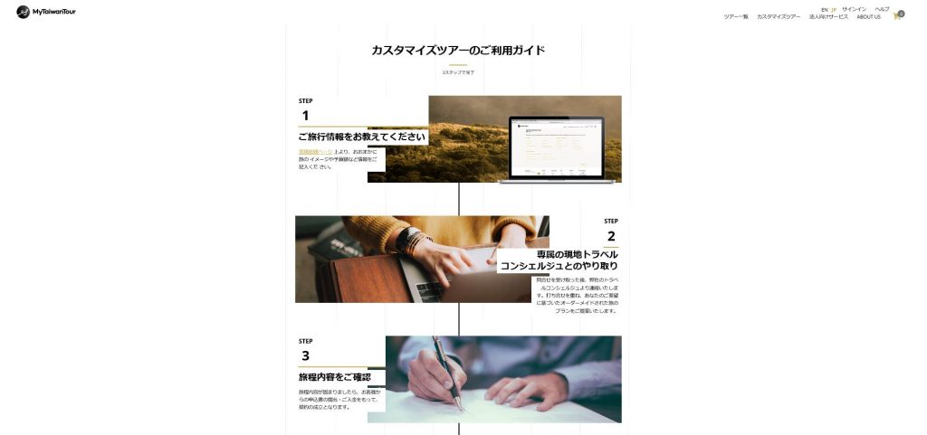 ちなみに、このツアーのオーダーメイドは、カスタマイズツアーというサービス名称で、同社のホームページからツアーの依頼や、見積り・相談などをすることができます。