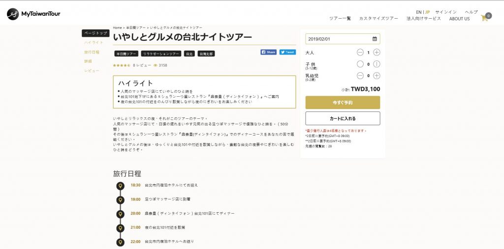 My TaiwanTourの公式ホームページから、好みのツアーを選んで申し込みます。