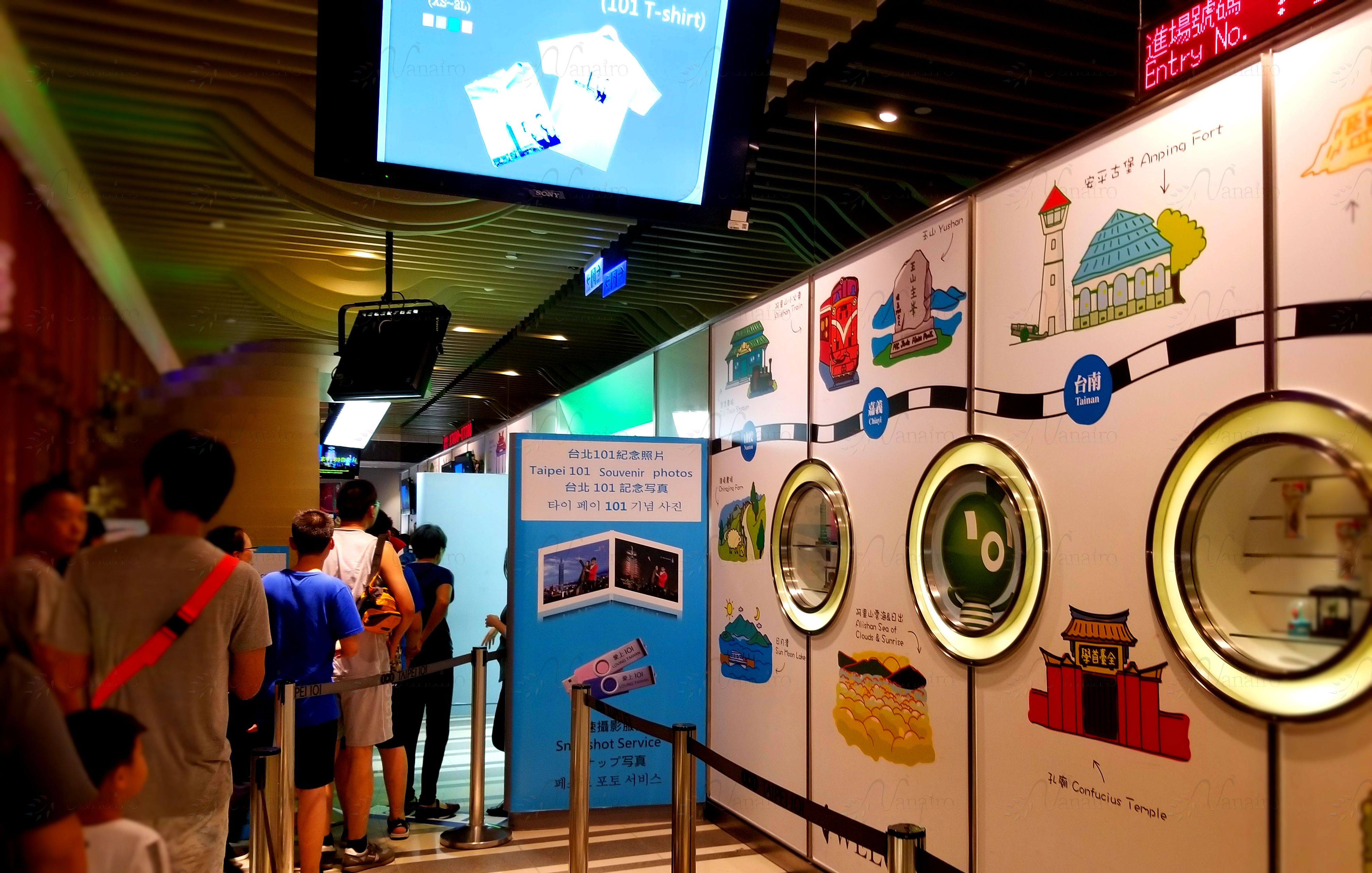 台北101の展望台に上る前には、エレベーターに乗るまでの途中に思い出用の写真撮影があり、ここで撮影された写真は後で購入(買いたい人だけが買う)することができます。
