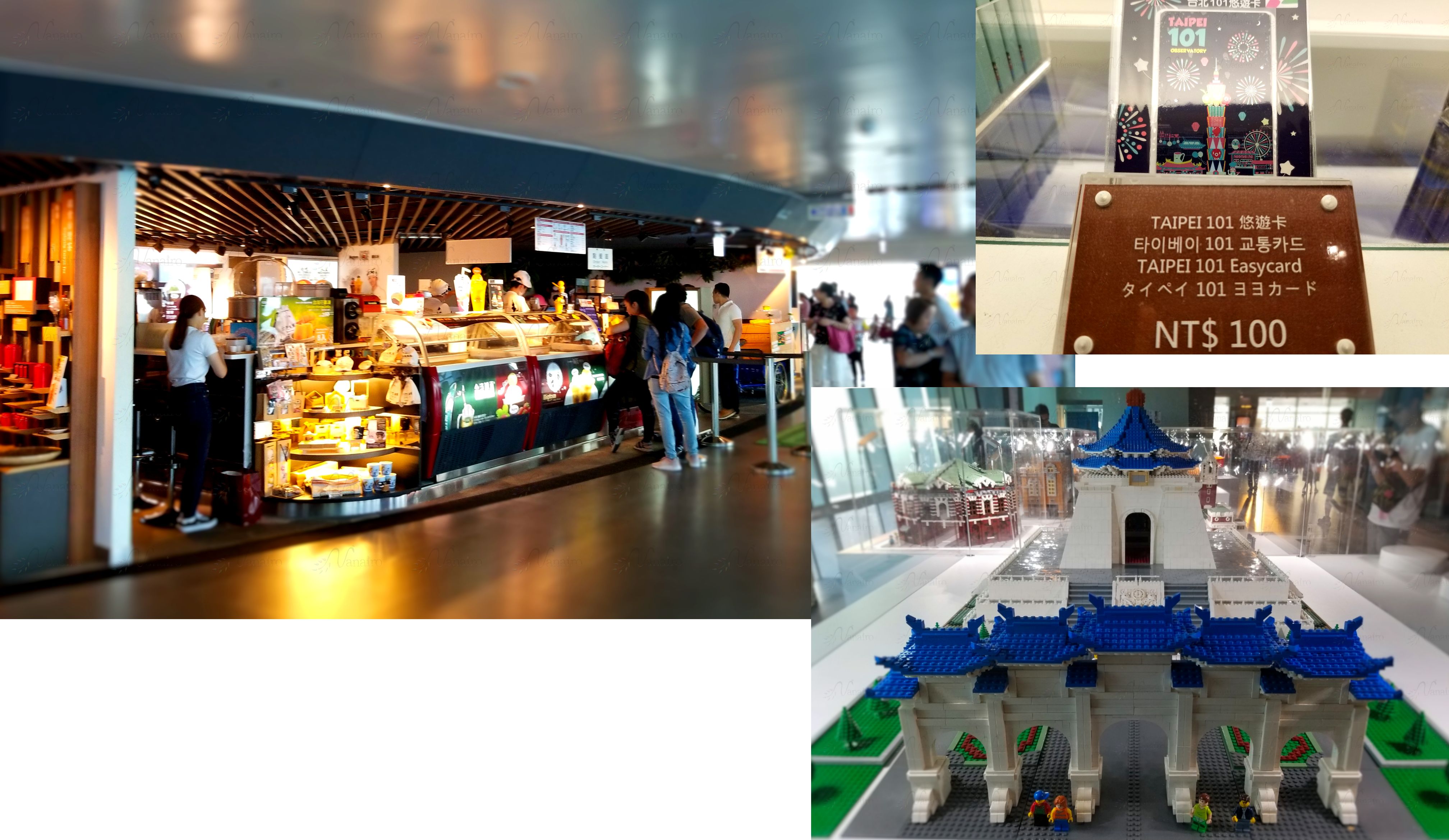 ちなみに、右上の写真が「台北101の悠遊卡(ヨーヨーカード)」で、右下の写真がLEGOブロックで作られた「中正記念堂」です。