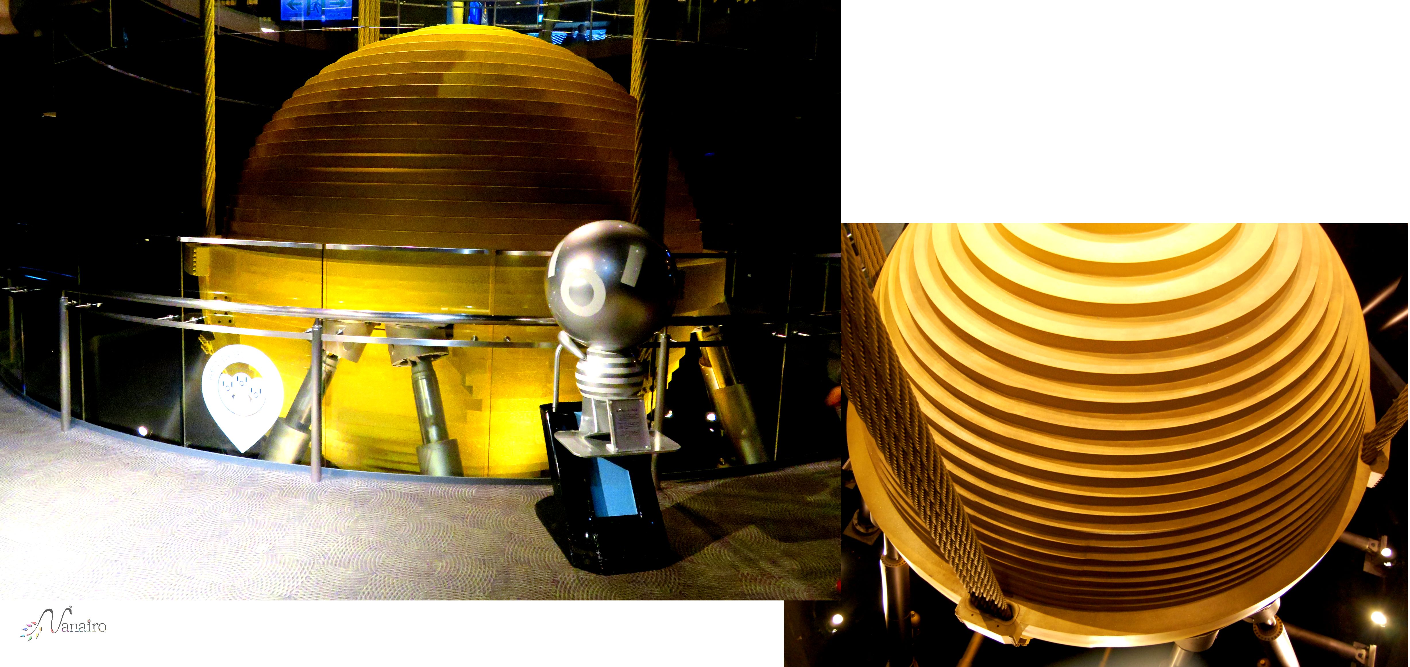 写真では球体の大きさがいま一つ分かり辛いですが、101階建ての超高層タワーを守る装置というだけあり、間近で見るとかなりの迫力があります。