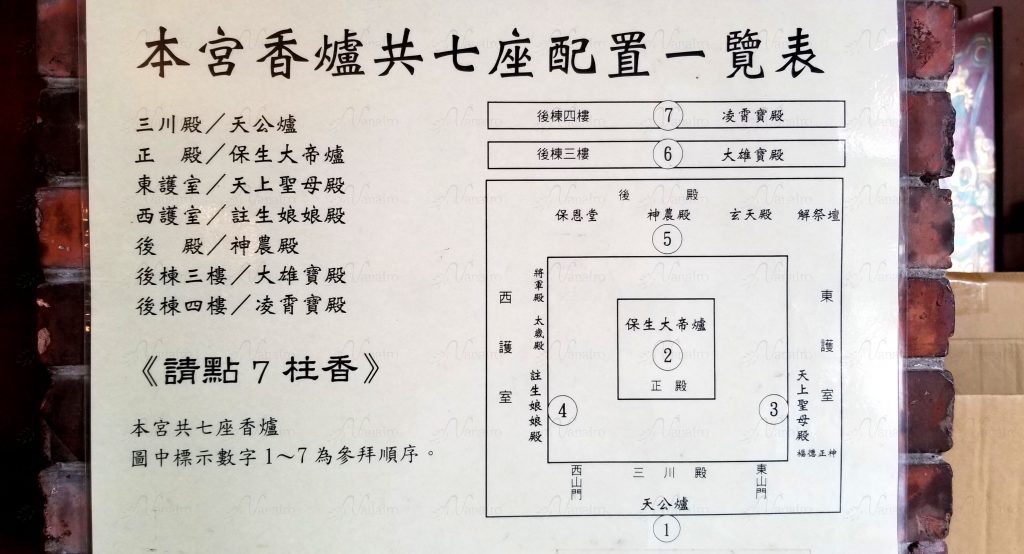 一例として、台北にある保安宮を例に出すと、下記のようにして順番に参拝します。